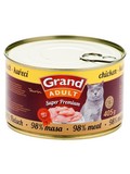 GRAND konz. Superpremium kočka kuřecí je superprémiová konzerva nejvyšší kvality obsahující 98% masa. Vyvážený poměr masa zaručuje plnohodnotnou potravu pro kočky všech plemen. Obsahuje podíl vitamínů a aminokyselin v přírodní formě.