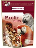Doplňkové krmivo pro velké papoušky. Versele-Laga Exotické Nuts je pochoutka, kterou papoušci prostě milují. Vyžadují dostatek různých druhů celých ořechů, ale stejně si vychutnají i bohatou směs zrnin a semen. Složení: semena, obiloviny, ořechy (min. 20% směsi arašídů, lískových oříšků, para ořechů, pekanových ořechů, vlašských ořechů, mandlí, cedrových ořechů, ovoce, zelenina.